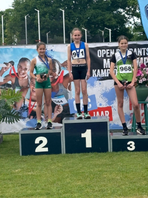 Bij de U13 meisjes werd Izzi Cazemier 2e en Lynn Blokland 9e, terwijl bij de U16 vrouwen Lievelot de Vos het zilver omgehangen kreeg. Ook hier weer veel PR's. De prijsuitreiking werd gedaan door Olympiërs Sven Roosen en Sofie Dokter en dat leverde nog mooie foto's op.